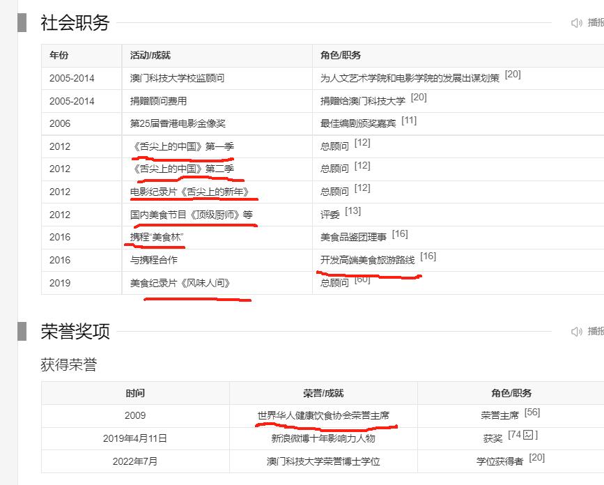 他在很多美食节目里当过顾问、评委,还拿过美食协会荣誉主席的头衔,得到了相当多的认可和支持。