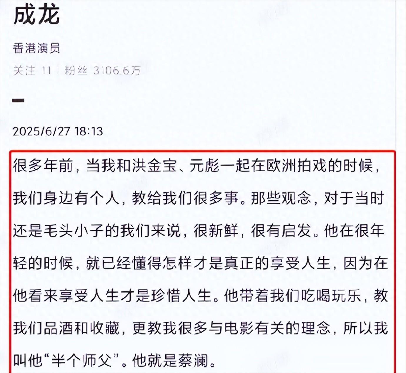 所以说到底,这事儿本来就没有标准答案。但项立刚先生不认可蔡澜,这也完全能理解——毕竟他有表达自己观点的权利。