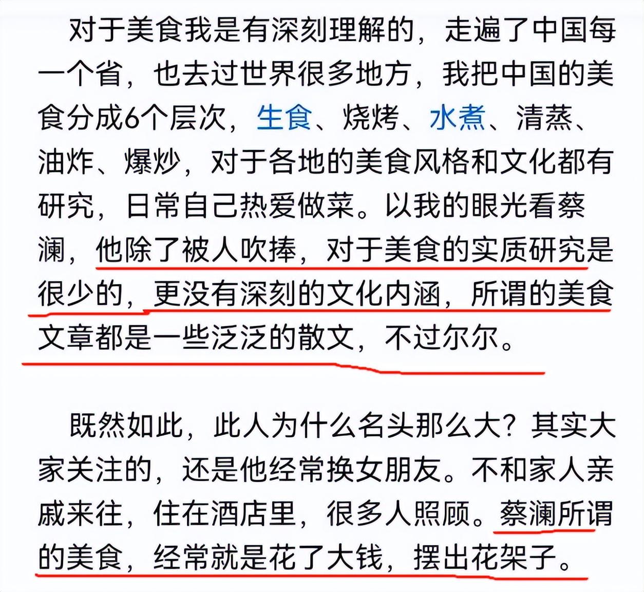 说白了,蔡澜所谓的美食,只不过是多花钱,摆出大的阵仗,让人觉得他很专业而已。