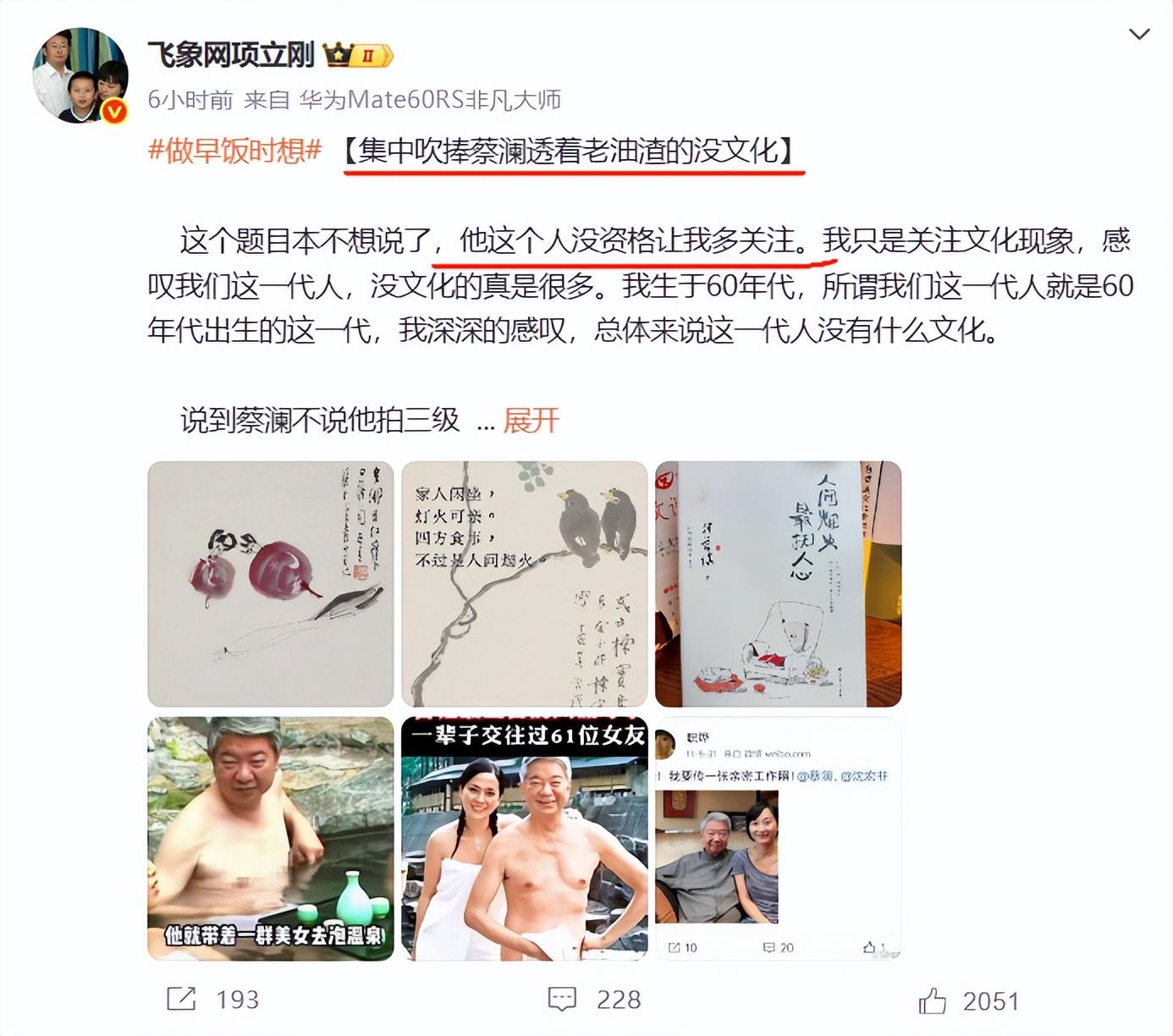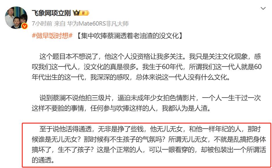 痛批蔡澜道德有缺,项立刚激情开麦